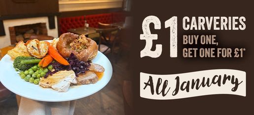 2 adult carveries for just £18. Perfect for a hearty lunch, this offer is the ideal way to enjoy great food at a fantastic price. Don’t miss out!
