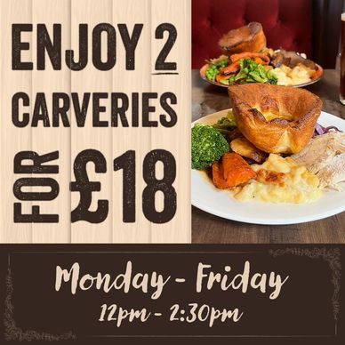 Join us Monday to Friday between 12-2:30pm and savour our delicious carvery with an amazing deal –