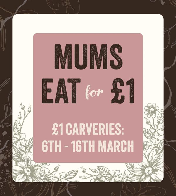 Treat mum to a Woodman Carvery for only £1, from 6th - 16th March! Carvery served every day from 12pm - 7pm.